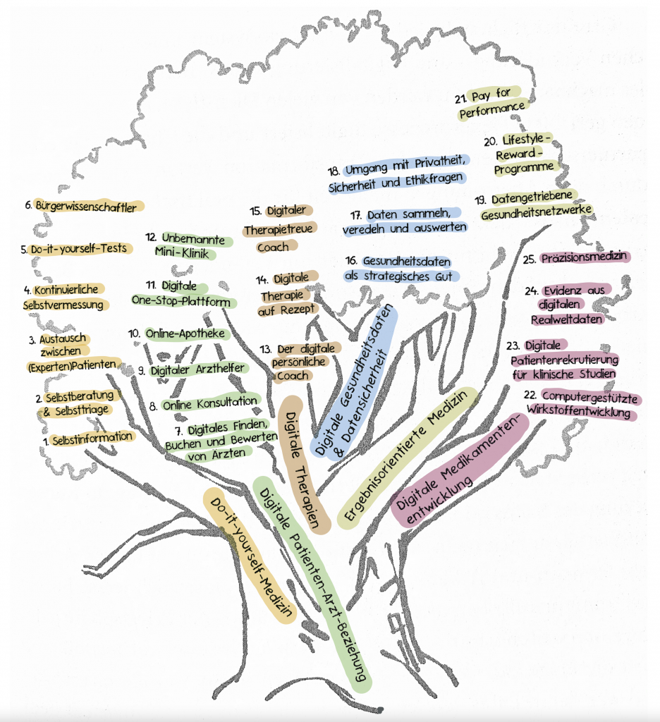 Quelle: Fleisch, Franz, Herrmann, Mönninghoff: Die Digitale Pille. Eine Reise in die Zukunft unseres Gesundheitssystems. Campus, 2021, S.13
